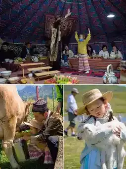 ✔ Kazakh family visit: hold lambs🐑, milk cows, play the dombra