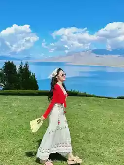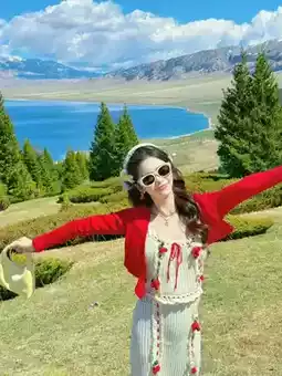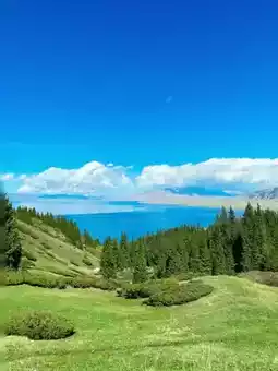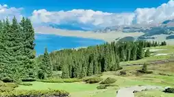 Vast grasslands, pine trees, snowy mountains, and lake water🧚🏻♀️