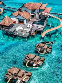Maldives Ozhen Reize slides into the jelly sea from the room