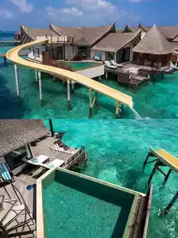 ❶ Maldives' most viral waterslide: A 200m-long slide plunging directly into the lagoon—adults and kids alike won't want to leave! The exhilarating splash of seawater beats any waterpark