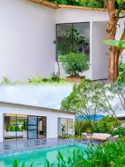 The design of Xiaozhai Xiaoyuan (Little House Little Courtyard) can be considered a three-dimensional textbook of Lingnan architecture. The owner invited local emerging designers to deconstruct and reassemble traditional elements under the concept of "Contemporary Lingnan." The central courtyard follows the "four waters returning to the hall" layout, aligning with feng shui principles. During rainy seasons, water drips from the roof tiles into the skywell, creating nature's own symphony.