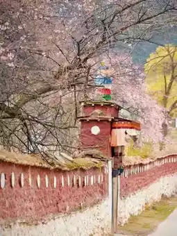 📍Qingduo Monastery (Qingduo Town, Bomi County) - Stunning peach blossoms in a 500-year-old ancient monastery