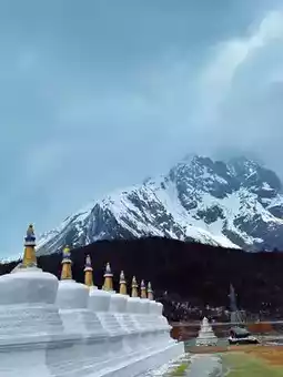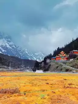 After climbing the slope, you reach Galong Monastery, also called Galong La Tunnel by some. See picture 1. Park your car where I parked to check in, then turn around and drive to the parking lot at the foot of the monastery mountain, see picture 3. Standing in the parking lot, you are surrounded by mountains on all sides, with glaciers and snow-capped mountains on three sides. Definitely worth a visit.