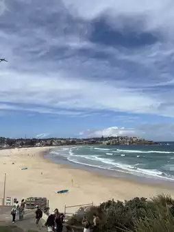 Bondi Beach, located in Sydney's eastern suburbs, is one of Australia's most iconic beaches. In the morning, the sky shimmers a pale golden hue. Morning joggers leave light footprints on the sand, while surfers ride the first waves, and the sea breeze is filled with the scent of salt and vitality.