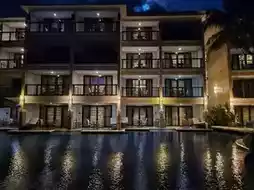 Guests can enjoy international cuisine at the Lagoon Café by the poolside. The resort also offers essential facilities such as a gym, business center, convenience store, and 24-hour backup power.