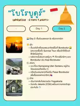 โข Arrive in Yogyakarta and take a car to Borobudur