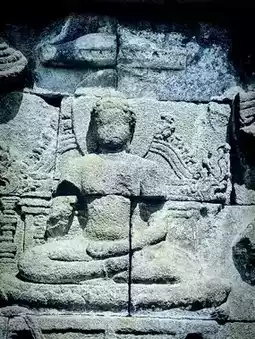 • Intricate stone reliefs (depicting Buddha's life and Buddhist scriptures)
