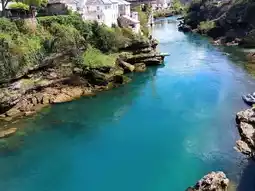 * A natural paradise near Mostar with turquoise pools and lush greenery.