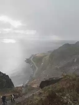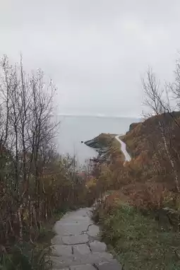 I have to say, Bøstad is truly a hiker’s paradise! There’s a trail behind the museum that leads straight to the seaside. On clear days, you can see the snow-capped mountains on the opposite shore reflected in the water. We encountered rainy weather, which made it feel even more atmospheric, with mist swirling around like stepping into a Nordic myth scene🌊 A 15-minute walk takes you to the legendary "Southwest Corner," where there’s a cluster of rocks perfect for photos.