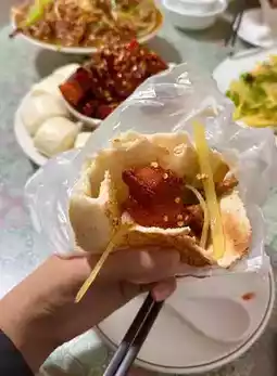 A friendly old couple has been running the restaurant for many years. The braised pork is fat and lean, the portion is large, sweet and rich, and it is paired with stir-fried spicy chili peppers. It is sandwiched between small steamed buns and is really delicious! ! The pot stickers 🐔 are really good too! Fried until crispy on the outside and tender on the inside, paired with classic old-fashioned sweet sauce, it's so delicious that you won't want to leave out. They also have a variety of stir-fried dishes, including shredded pork in soup and spicy and sour shredded potatoes! The portion is really big, so be careful when ordering with fewer people! There are also private rooms, which are perfect for drinking with friends. The food is affordable, large in quantity and delicious!