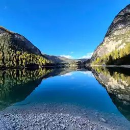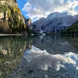 In winter, the frozen lake and snow-covered trails create a peaceful wonderland ideal for quiet walks or snowshoeing. The quaint mountain huts nearby provide cozy stops to enjoy local specialties while soaking in the alpine atmosphere. Whether seeking relaxation by the water or adventure in the surrounding hills, Pragser Wildsee Lago Di Braies in Südtirol delivers a full alpine experience, combining natural splendor, outdoor activity, and a sense of timeless tranquility.