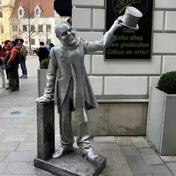 Another frequently photographed statue is "Schöne Náci," a figure dressed in early 20th-century gentleman's attire, complete with a top hat, slightly bowing. Based on a real person named Ignác Lamár, Schöne Náci was a well-known character in Bratislava's streets during the 20th century, famous for his gentle manners and habit of greeting people.