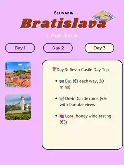 • 🏰 Devín Castle ruins (€5) with Danube views