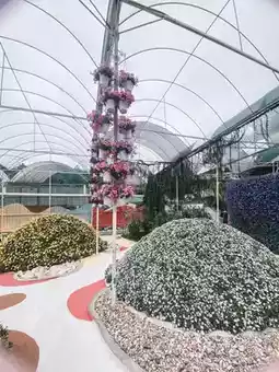 The market has a fresh, vibrant, and colorful atmosphere, filled with rows of flowers like roses, carnations, daisies, and lavender. Cool highland air makes it a pleasant outdoor experience, perfect for strolling and taking photos.