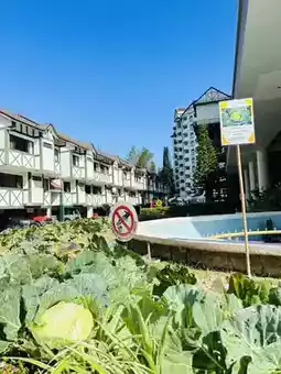 🌿 The hotel grounds were a leisurely stroll. There was a vegetable patch on the side, and on the other side, there was a garden with many types of temperate flowers, including hydrangeas. It was a delightful sight, a joy, and a truly blissful experience without even having to go anywhere. ~
