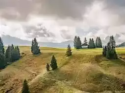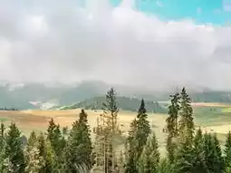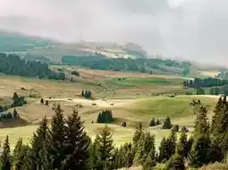 Rolling green meadows dotted with colorful wildflowers in summer.