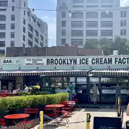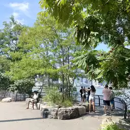A place where hipsters gather in the eastern riverside area between Brooklyn and the Manhattan Bridge