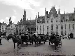 About an hour by train from Brussels. It's about a 15-minute walk from Bruges Station to the Old Town.