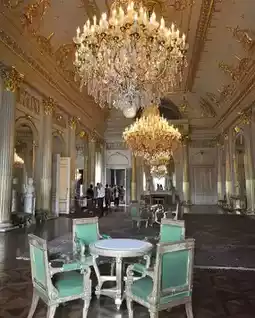 Although the royal family doesn't reside here, the palace interiors, including the halls, banquet hall, and Hall of Mirrors, are open to the public free of charge from late July to early September! 💡 The exquisite chandeliers and opulent decorations will leave you speechless! 🌟 The Hall of Mirrors is particularly unique, with its ceiling adorned with beetle wings that shimmer with a dreamy green iridescence under the lights. 🐞✨