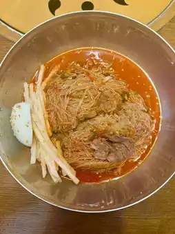 The best dish here is the pork king galbi. However, I went there specifically for the cold noodles, and let me tell you, it's a cold noodle paradise! The noodles are thin, and the seasoning is amazing—truly the best among cold noodle restaurants. You must try it at least once!