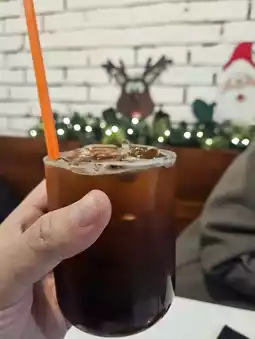 When you enter the cafe, you will be impressed by the beautifully decorated tree and the cozy interior.