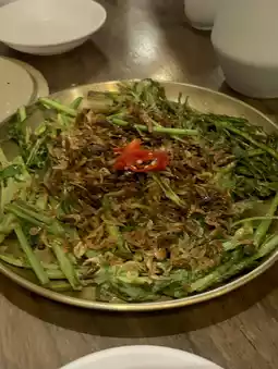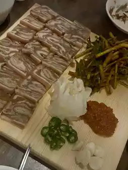 You should definitely try the boiled pork here!!! and the water parsley shrimp pancake
