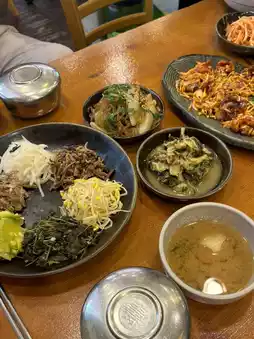 This restaurant offers set meals, and the barley rice set meal comes with stir-fried octopus as the default dish. They also have a variety of other menu items like bossam set meal, Korean pancakes, acorn jelly, and more!