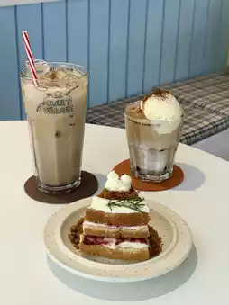I ordered an ice cream latte and a vanilla latte, and they were sweet and delicious. The cake was also soft and sweet, which was delicious.