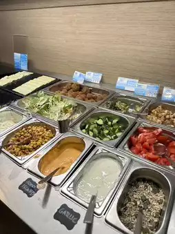 As it was close to closing time, the food on the buffet table was almost gone and was not replenished💦