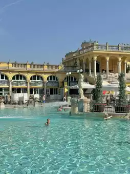 Széchenyi Thermal Bath is one of Budapest's most renowned hot springs, offering a unique spot to enjoy the warmth of nature right in the city center. With large outdoor pools and various thermal baths, it welcomes visitors year-round, regardless of the season or weather. 🌞❄️🛁