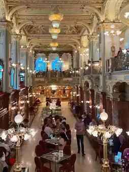 Daken as "the most beautiful cafe in the world," New York Cafe boasts the ultimate in opulence, with ceiling frescoes and gold chandeliers. It's the perfect place to end the day with a strong coffee and a sweet dessert. Lose yourself in a relaxing moment amidst the classical music. 🍰🎶🕯️