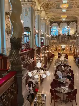 Located in the heart of the city, the New York Café epitomizes Budapest's sophistication. Under golden chandeliers and between marble columns, the soft melodies of classical music fill the air. Amid the aroma of coffee and the slow passage of time, travelers momentarily become artists. 🥐☕🎶