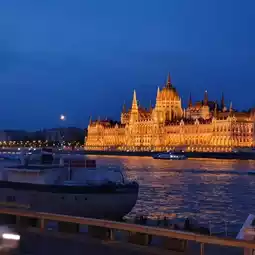 เย็น: ล่องเรือชมวิวแม่น้ำดานูบยามค่ำ เห็นเมืองทั้งสองฝั่งสว่างด้วยแสงไฟ ✨