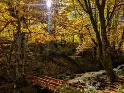 **Durmitor National Park** (Montenegro): Helicopter aerial view of Black Lake, stay in forest treehouse hotels