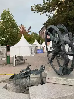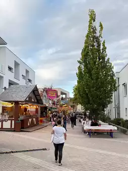 🎪 A huge fairground in the heart of Bühl: colorful rides, a giant Ferris wheel, street stalls, and food tents lining the pedestrian core.