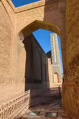 One of the earliest madrasahs built in Bukhara, it was built between 1530 and 1536, and its founder, Mir-i-Arab, was a missionary from Yemen. This madrasah can only be visited at the gate, and some of the interiors are all closed, because the madrasah is still in use today, and there are still students of the madrasah attending classes inside.