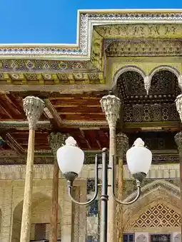 Bolo Khauz Mosque, a stunning example of Islamic architecture in Bukhara, is a haven of serenity and cultural significance. As I stepped into the mosque's tranquil courtyard, I was struck by the majestic iwan, adorned with intricate carvings and ornate tilework, which seems to reflect the region's rich artistic heritage. The mosque's historical significance is palpable, having served as a place of worship and refuge for centuries. I marveled at the beautiful frescoes and delicate calligraphy that adorn the mosque's interior, a testament to the skill and craftsmanship of local artisans. The mosque's peaceful atmosphere and stunning architecture make it a must-visit destination for anyone seeking to experience the authentic essence of Bukhara's cultural legacy. As I explored the mosque, I felt a deep connection to the city's spiritual heritage and its people, who have preserved their traditions with remarkable dedication. The mosque's beauty is truly timeless.