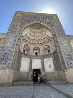 The Abdul Aziz Khan Madrasah, a stunning example of Timurid architecture in Bukhara, is a testament to the city's rich cultural heritage and historical significance. As I approached the madrasah, I was struck by its majestic facade, adorned with intricate tilework and ornate mosaics, which seem to reflect the region's artistic prowess. The madrasah's history is steeped in tradition, having served as a center of learning and spiritual growth for centuries. I marveled at the beautiful calligraphy and delicate decorations that adorn the madrasah's interior, a testament to the skill and craftsmanship of local artisans. The madrasah's stunning architecture and peaceful atmosphere make it a must-visit destination for anyone seeking to experience the authentic essence of Bukhara's cultural legacy. Its grandeur, history, and cultural significance make it an unforgettable part of any Central Asian itinerary. The madrasah's beauty is truly captivating.