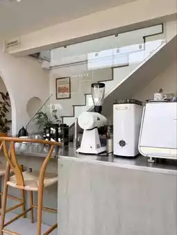 📝 : unbox.project cafe A cute, minimalist coffee shop in Buriram city center. The shop is decorated in a gentle, soft style, with a peaceful but beautiful, cool, and outstanding atmosphere. Drinking coffee, eating snacks, and having a good atmosphere makes your day off complete.