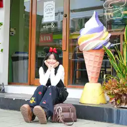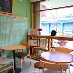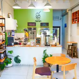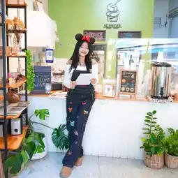 A small homemade yogurt ice cream shop in a green building that stands out and can be seen from afar. The interior is decorated very cutely. There is a corner for taking pictures and checking in. Plus, the air conditioning is cool. Sit and escape the heat and eat delicious ice cream. I must say it's very satisfying. 🍦