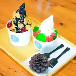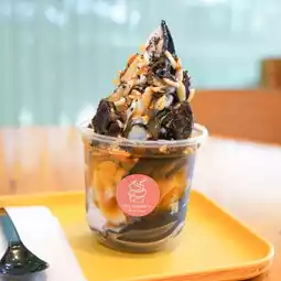 The shop serves low-calorie, low-fat yogurt ice cream. There are many flavors, sizes, and toppings to choose from. There are also Hong Kong waffles that are freshly baked every piece. 🥞