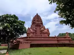 🎈Wat Pa Khao Noi is located next to the Khao Kradong Volcano in Mueang Buriram District. Inside Wat Pa Khao Noi, the Phra Borommathat Chedi Si Suwajkunanusorn is enshrined. This ancient Khmer-style chedi, modeled after Phanom Rung Stone Castle, is a brick-red structure approximately 31 meters high and has two levels, surrounded by a bridge and Naga stairs, and four other entourages. The second floor houses the relics of the Lord Buddha, a statue, and the relics of Luang Pu Suwat Suwajo. The first floor houses the Phra Bodhidharmacariya Thera Museum, displaying historical photographs and belongings of Luang Pu Suwat Suwajo.