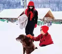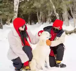 The village is home to many dogs, perhaps accustomed to the constant flow of tourists and their offerings of food. They were all very friendly, posing for photos and allowing people to pet them, often earning treats in return. Adorned with red hats and scarves against the snowy landscape, they made for excellent photo subjects. We strolled along, playing with the dogs, occasionally lying down on the snow-covered ground.