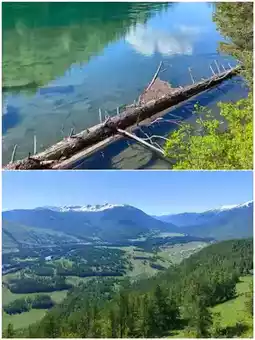 Rush into the scenic area early in the morning! Take the shuttle bus directly to Kanas Lake. In April, the lake is half frozen and half azure blue—absolutely dreamy! Hike along the lakeside boardwalk, breathe in the pine-scented air, and feel completely rejuvenated😆! In the afternoon, climb the Fish Viewing Platform. Don't let the 1,068 steps discourage you! From the top, you can overlook the entire Kanas Lake. The combination of snow-capped mountains and the blue lake is breathtaking!