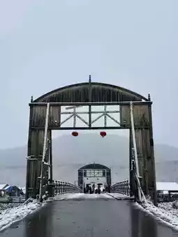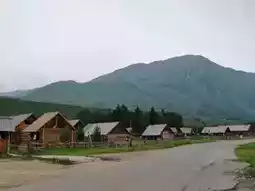 During my journey, I was supposed to meet my companion by a wooden bridge, but I accidentally took a wrong turn and ended up in this newly built village. Rows of new wooden houses were scattered, complementing the distant mountains, forming a peaceful scene. I anxiously navigated the paths, yet couldn't find the agreed-upon wooden bridge. My phone signal was also intermittent, making me incredibly anxious. Although beautiful here, at this moment, all I want is to find my companion as quickly as possible.