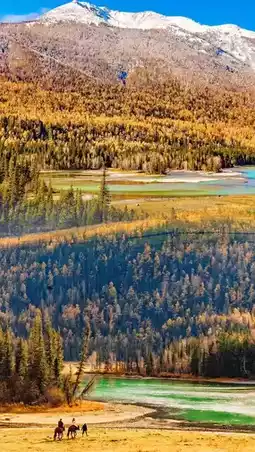 Kanas, meaning "beautiful and mysterious lake" in Mongolian, is located on Provincial Road 232 (S232) in Burqin County, Altay Prefecture, Xinjiang. It is known as the "God's Reserved Land." Here, glaciers, snowfields, mountains, rivers, lakes, forests, and grasslands come together. Every autumn, it becomes a palette spilled by God, with golden birch forests, azure lakes, and towering snow-capped mountains forming a breathtaking painting.