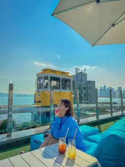 📍Dongbaek104 Cafe / A cafe located right next to Haeundae Blue Line Park Bus Stop. If you go up to the terrace, you can take a great photo with the sky capsule view.