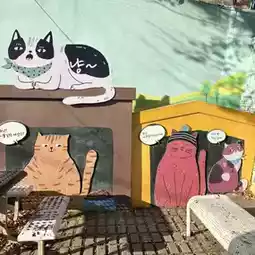 It's a colorful and cute town with objects and mural art everywhere, so I took lots of photos 📸