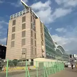 The elevator is spacious enough for a stroller.