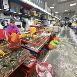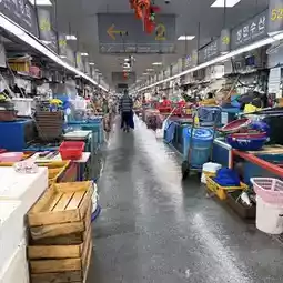The current Jagalchi Market began as a collection of places where seafood was traded at outdoor stalls during the poverty of the Korean War.